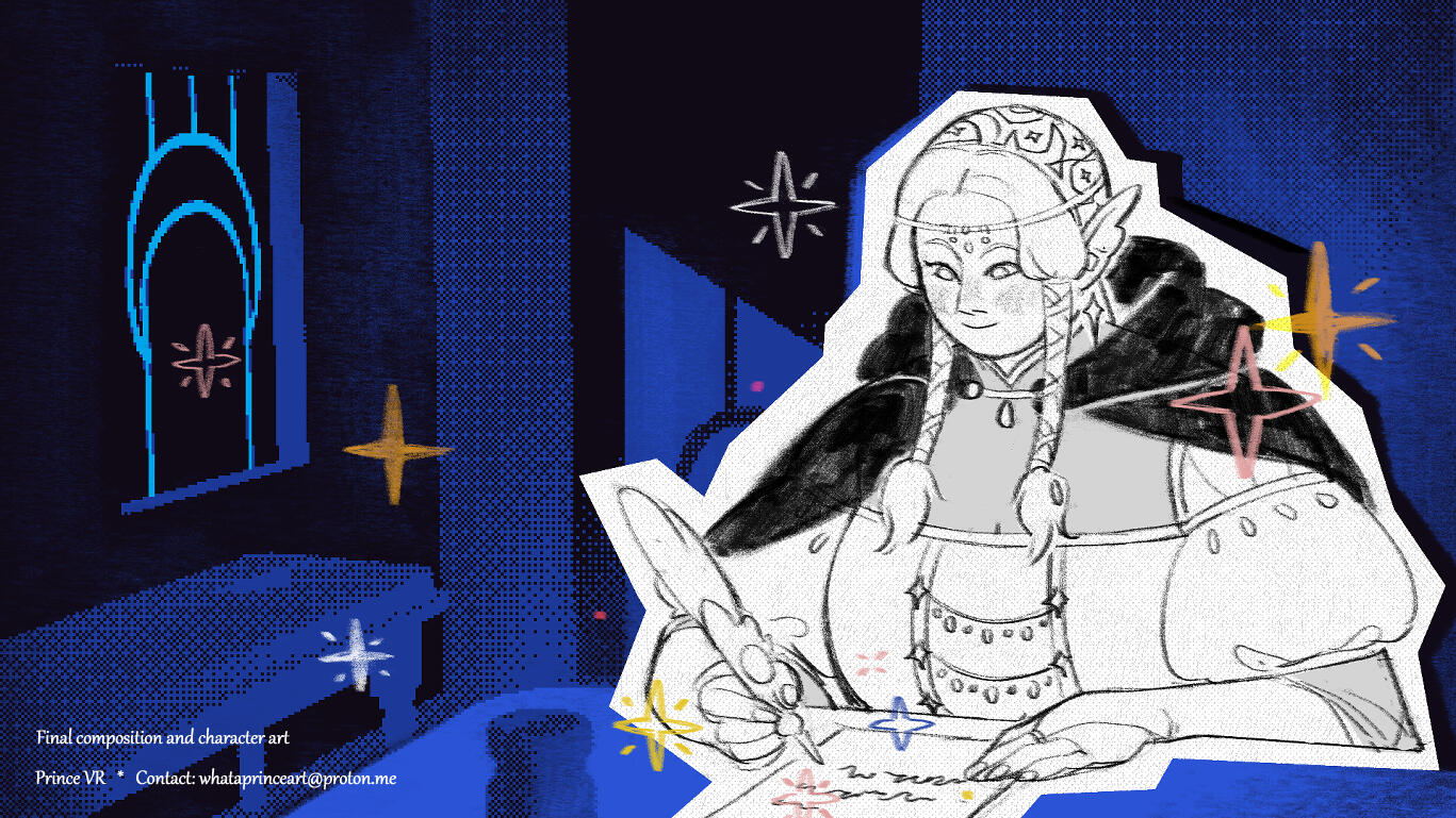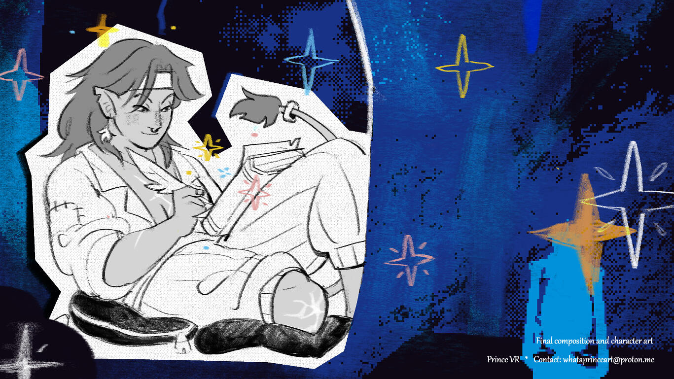 Prince is an illustrator and concept artist based in Galicia, Spain. He's been working on 2D/3D animation and videogames projects since 2020 and is currently colaborating in the art, animation and narrative department of the indie studio Michiños Fofiños.